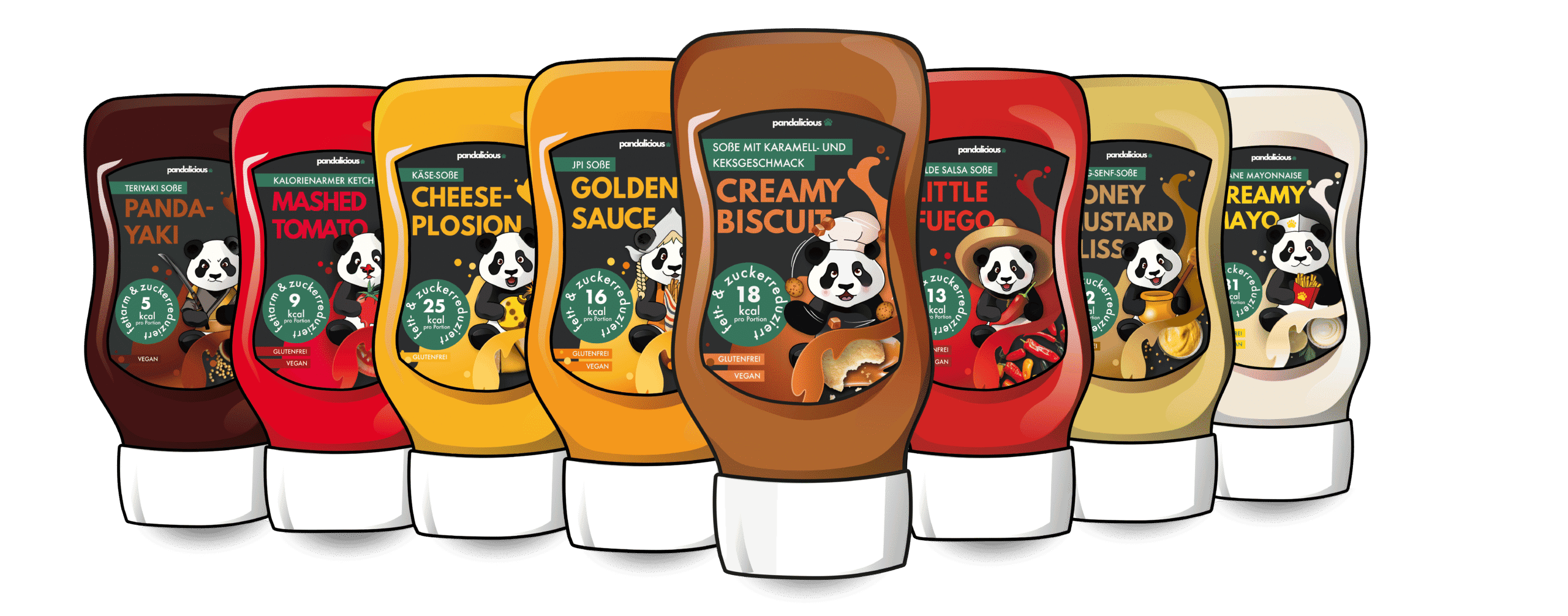 Du liebst intensiven Geschmack, willst aber nicht auf bewusste Ernährung verzichten? Unsere Soßen Honey Mustard Bliss, Cheeseplosion, Pandayaki, Golden Sauce, Creamy Mayo Mashed Tomato und El Fuego liefern genau das – volle Aromen, einzigartige Kreationen und dabei wenig Kalorien, Zucker und Fett. Perfekt für alle, die gesund genießen und trotzdem nicht auf Genuss verzichten wollen!